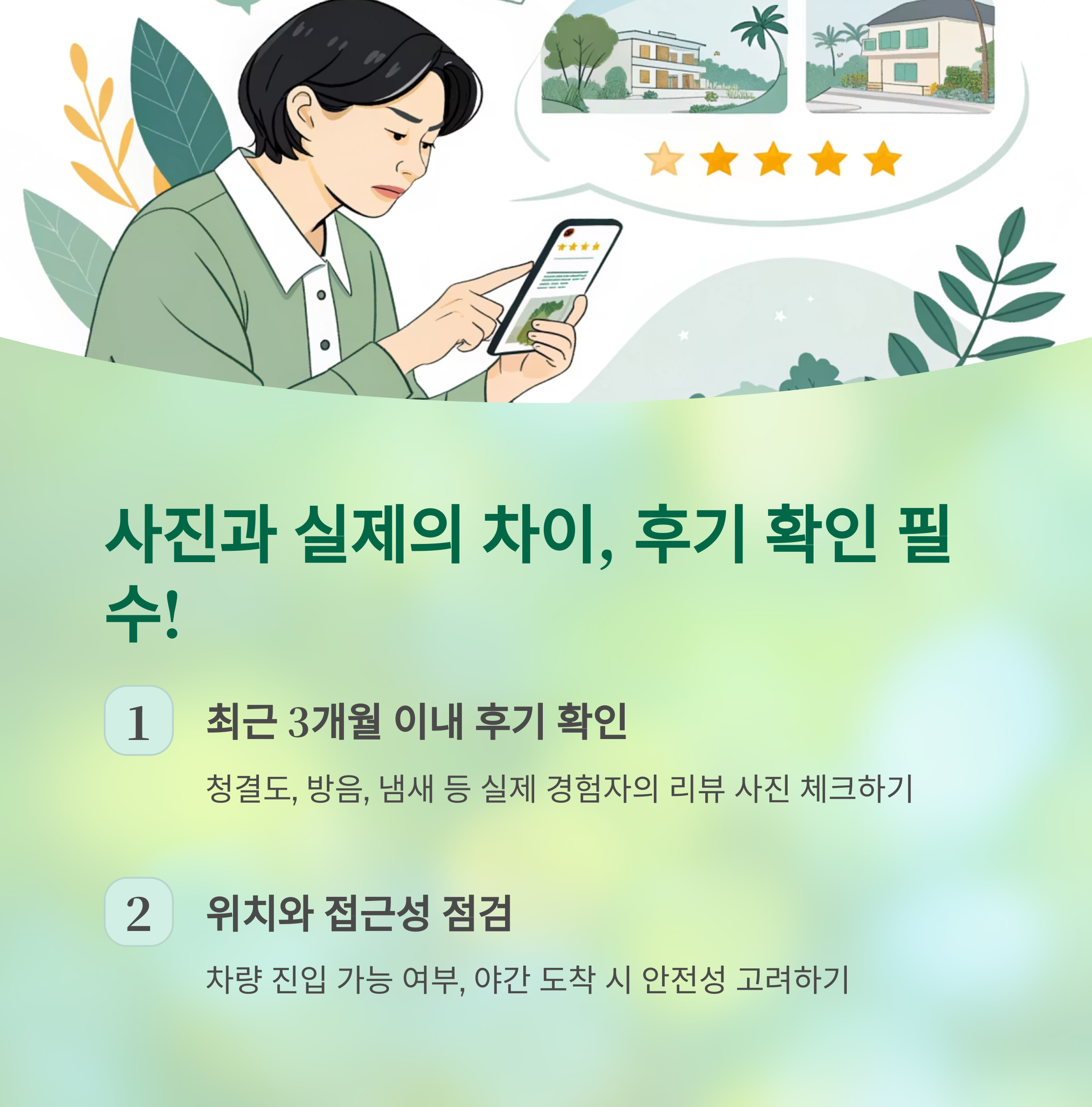 숙박의 편안함에 직결되므로 후기에서 구체적으로 언급된 내용 중심으로 체크하세요.