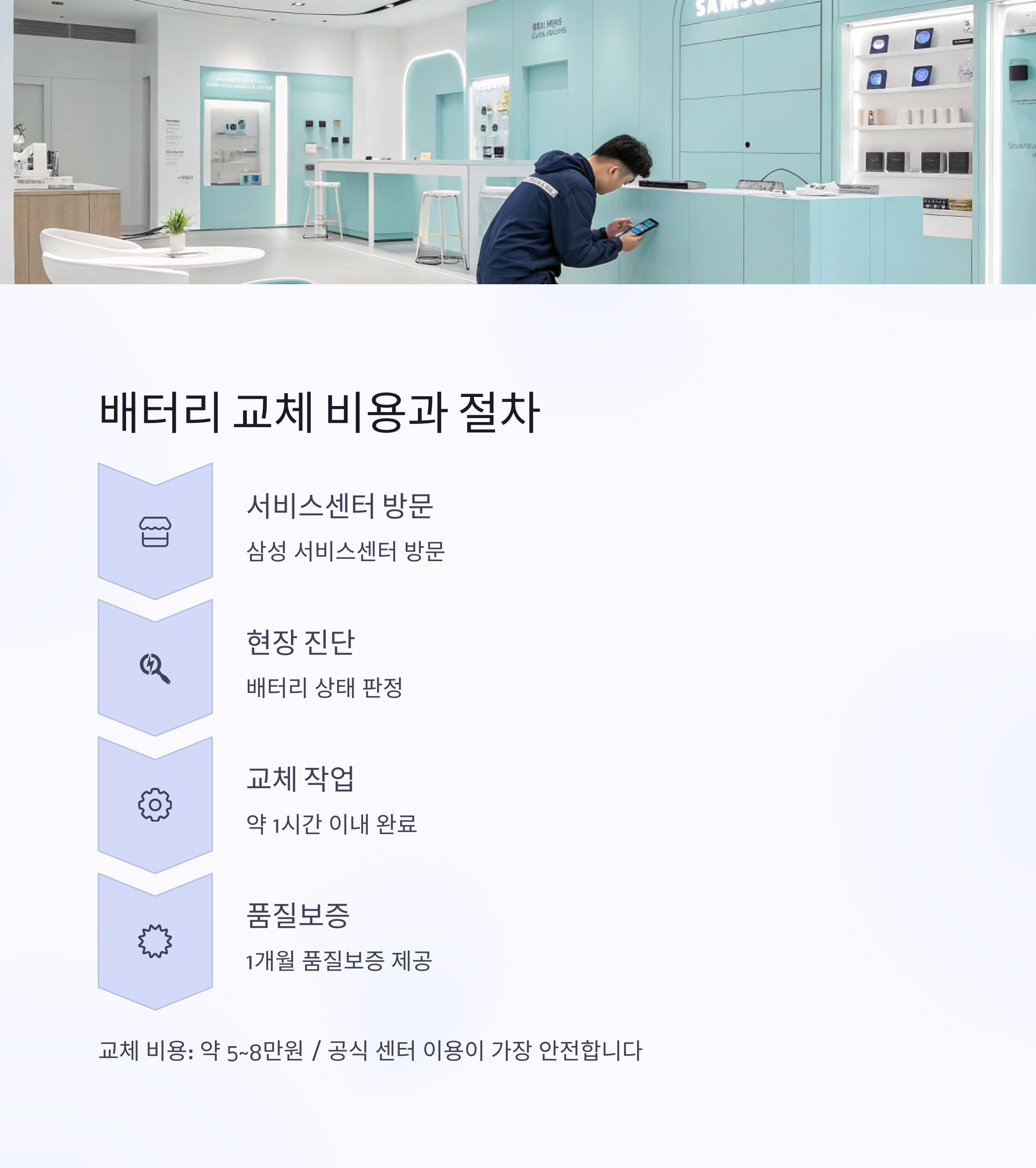 | 교체 장소 | 삼성전자 서비스센터 | 전국 가능 |