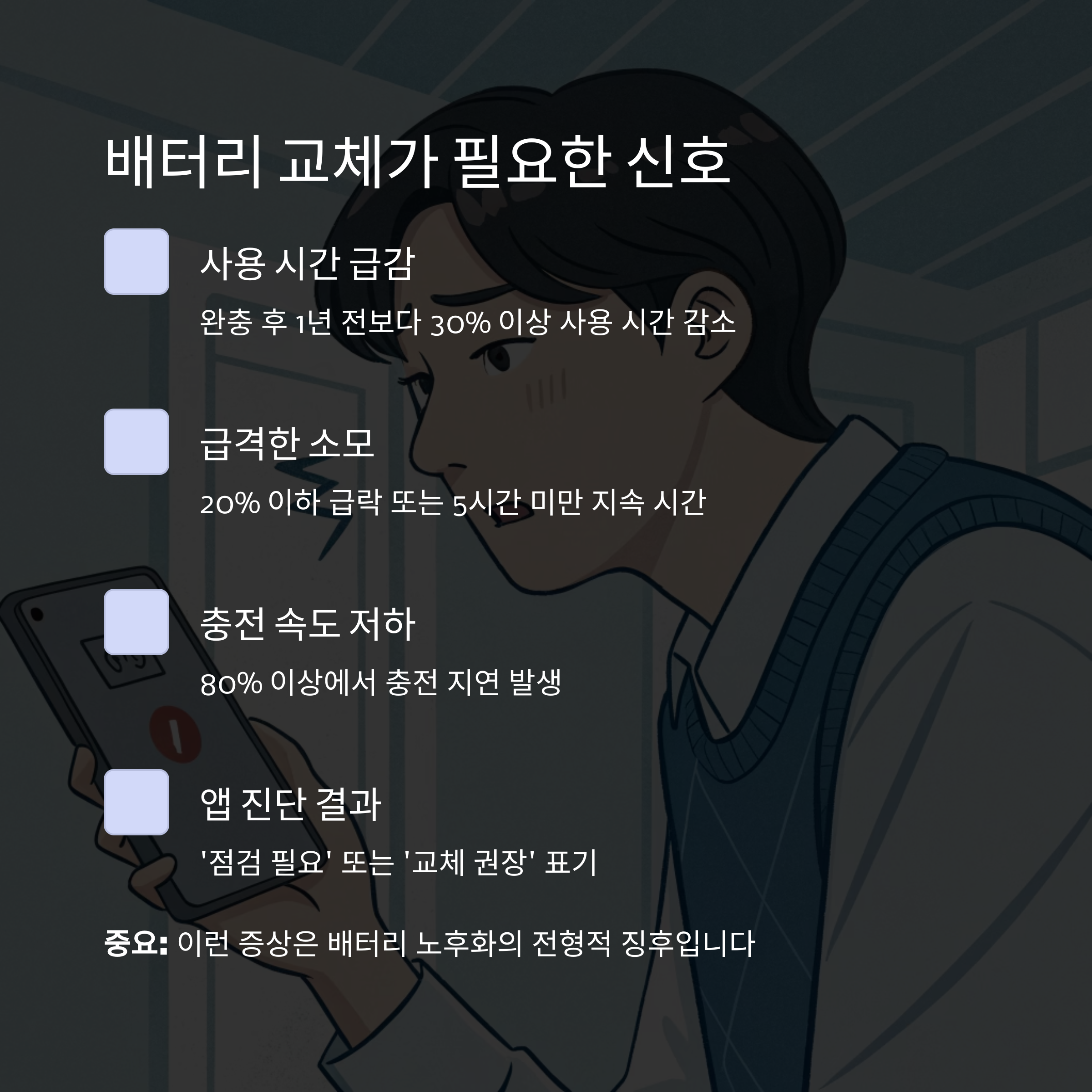중요: 이런 증상은 배터리 노후화의 전형적 징후입니다