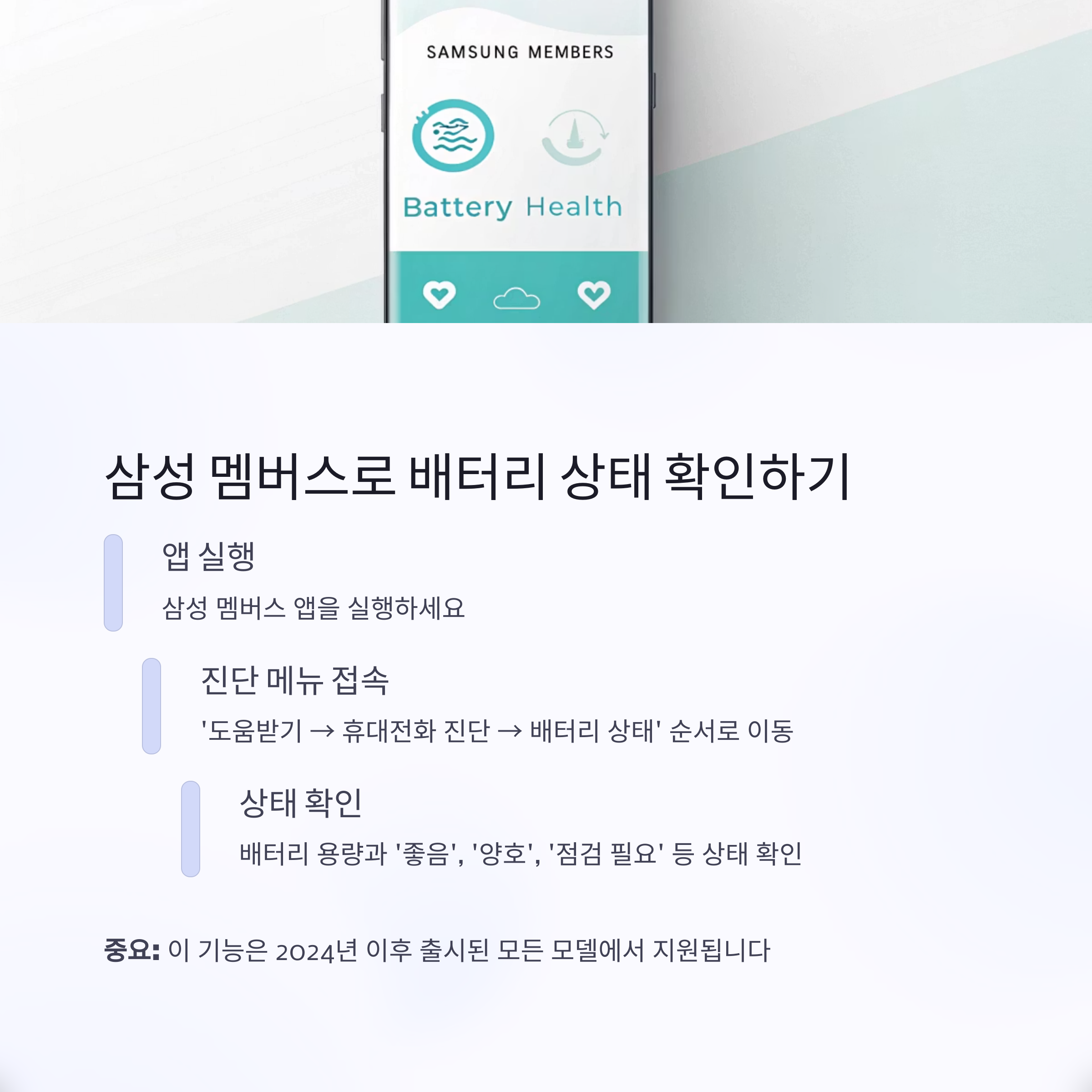 갤럭시 배터리 상태 확인은 삼성 멤버스 앱에서 가능합니다