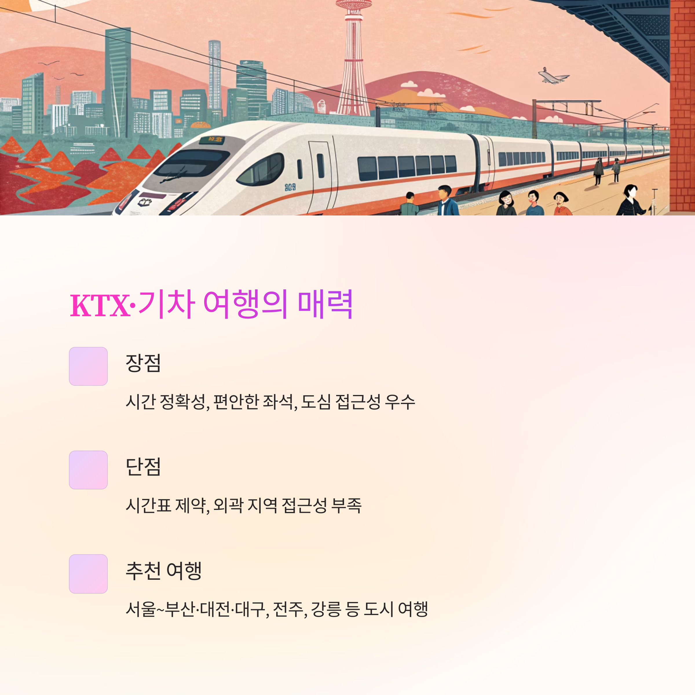 국내여행 교통수단별 장단점과 여행 스타일 완전 정리