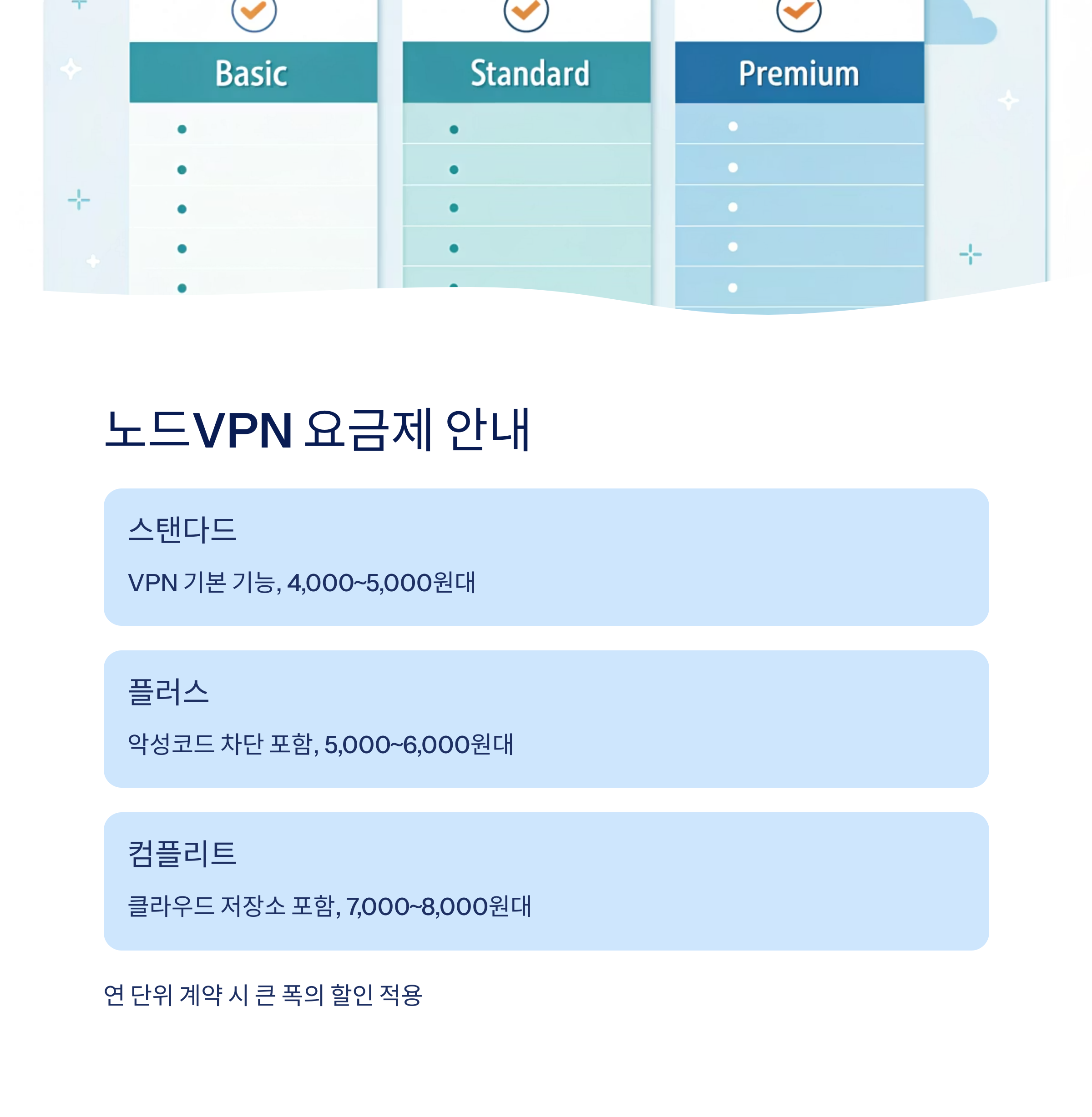 | 스탠다드 | VPN 기본 기능 제공 | 약 4,000~5,000원대 |