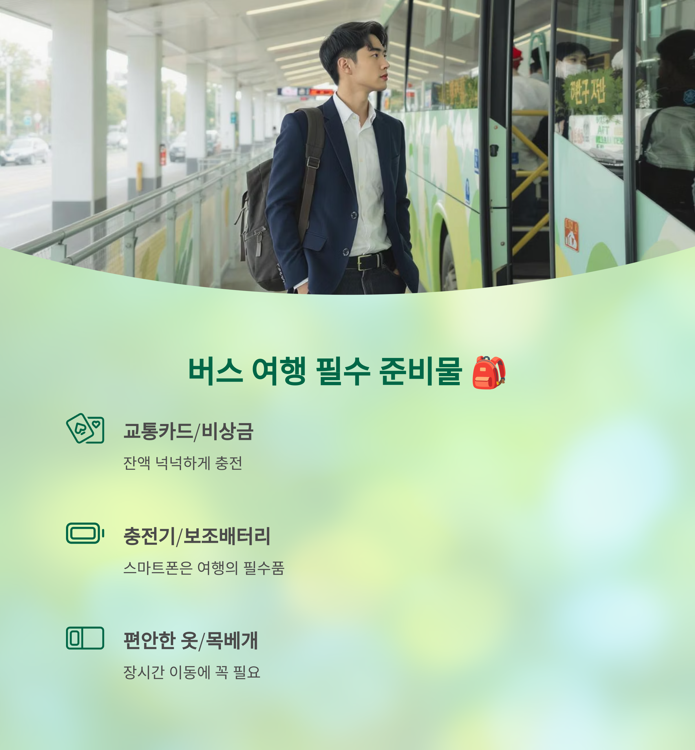 편안하고 스마트한 버스 여행을 위한 필수 준비물 체크리스트! 빠짐없이 챙겨서 후회 없는 여행을 만들어봐요!