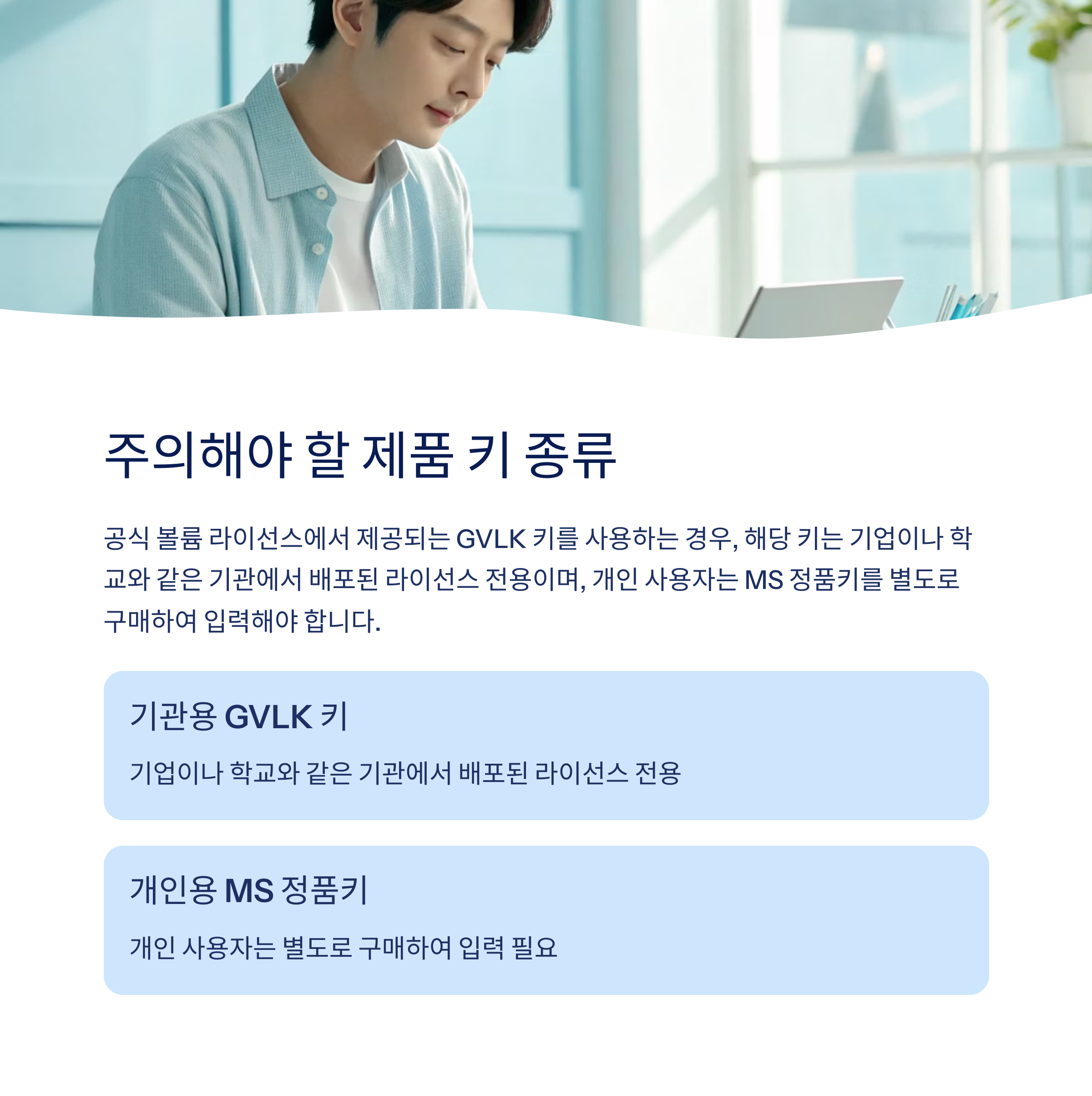 주의해야 할 제품 키 종류