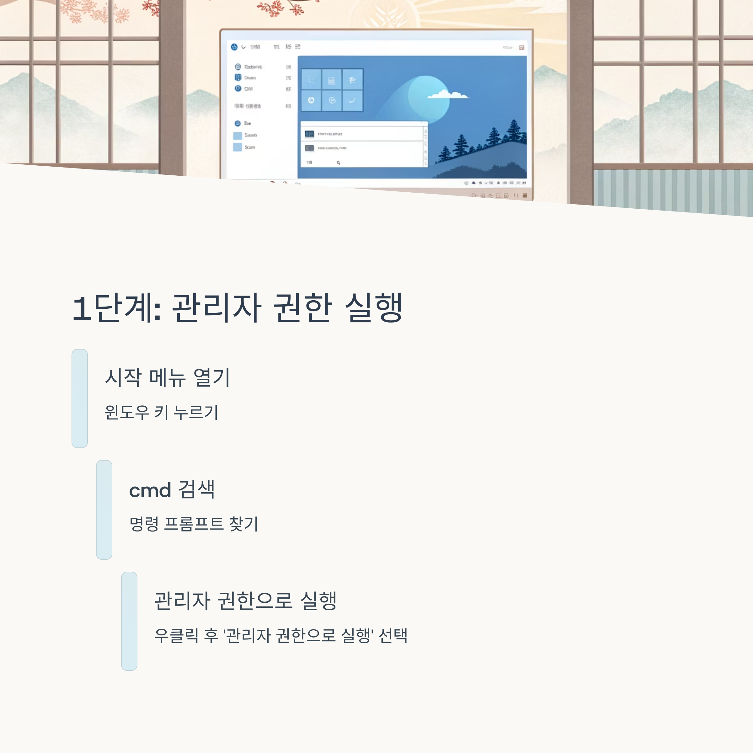 명령 실행 전 관리자 권한 여부를 꼭 확인해야 합니다