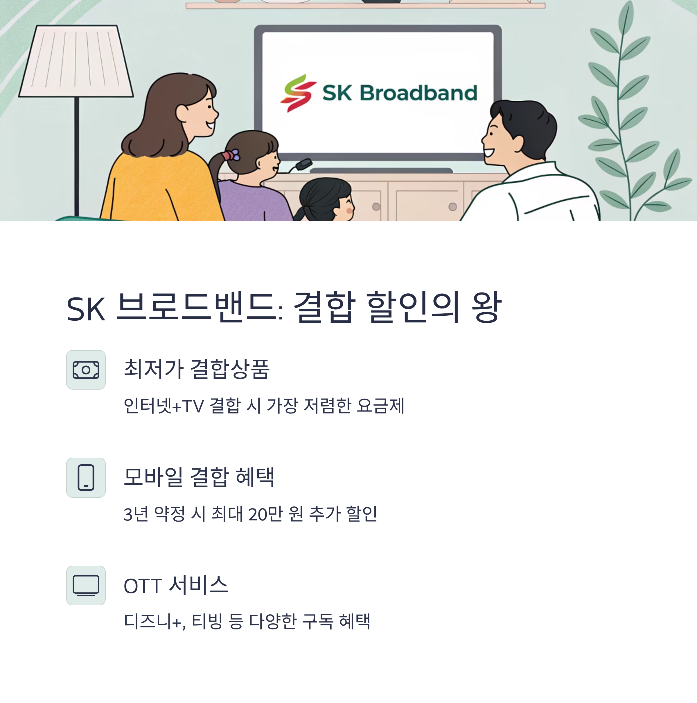 SK 브로드밴드: 결합 할인 최강, 가격 경쟁력 우위