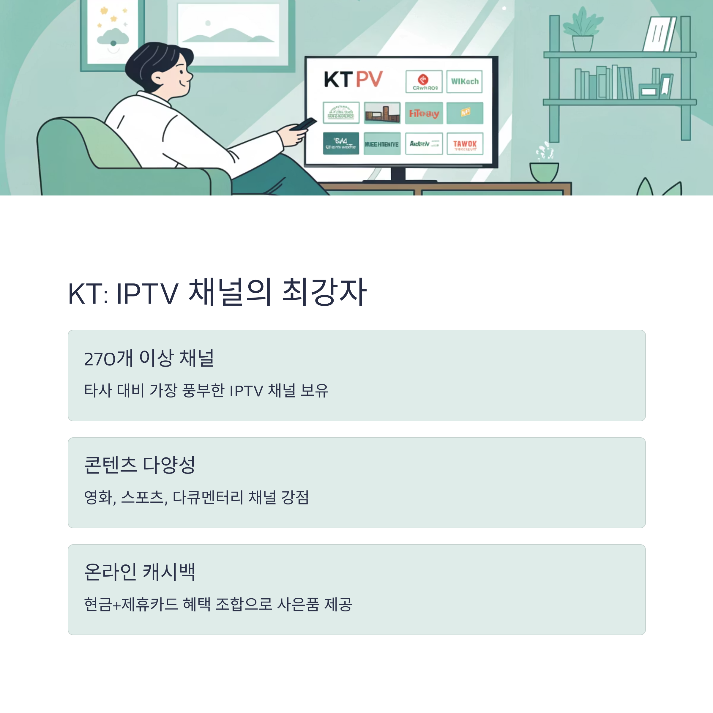 KT는 IPTV 채널 수와 온라인 캐시백이 강점,