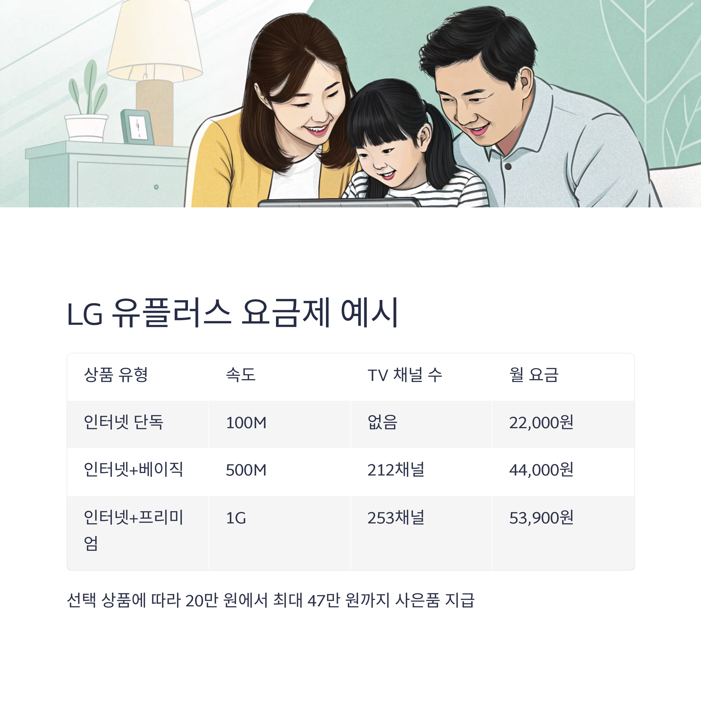 | LG유플러스 | 20~47만원 | 현금+가전 or 포인트 | 모바일 결합 시 최대 지급 |