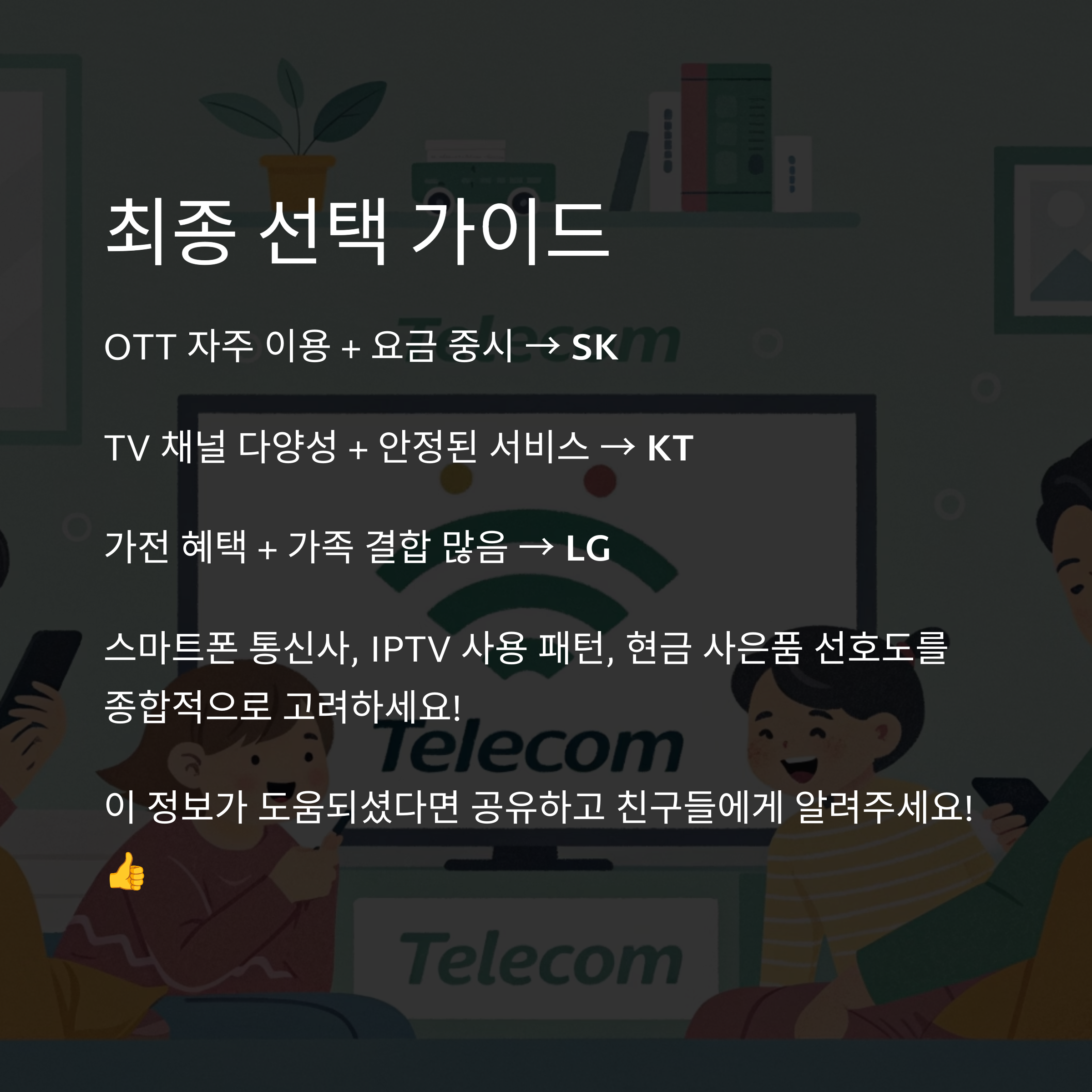 가입자 특성(OTT 활용도, 가족 결합 여부, 채널 수요 등)에 따라 유불리가 갈립니다