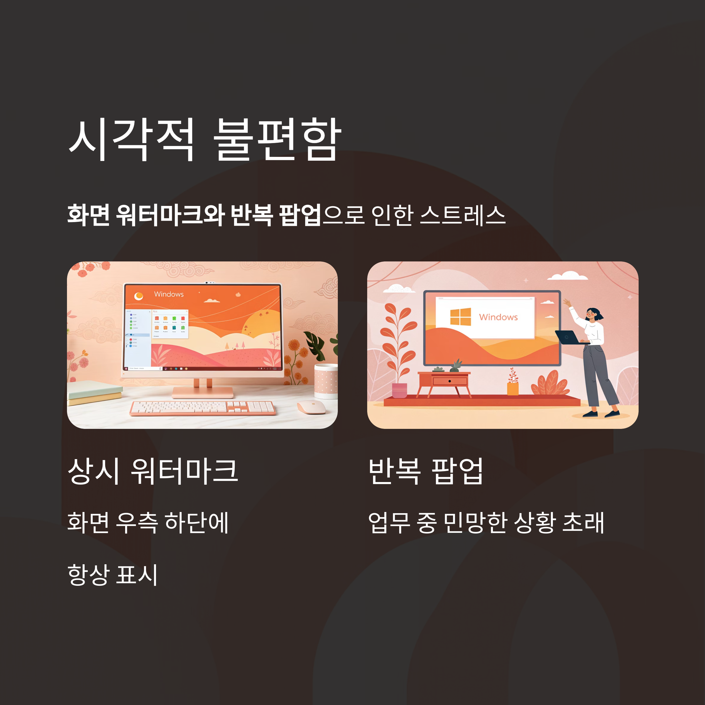 바탕화면 워터마크와 반복되는 팝업