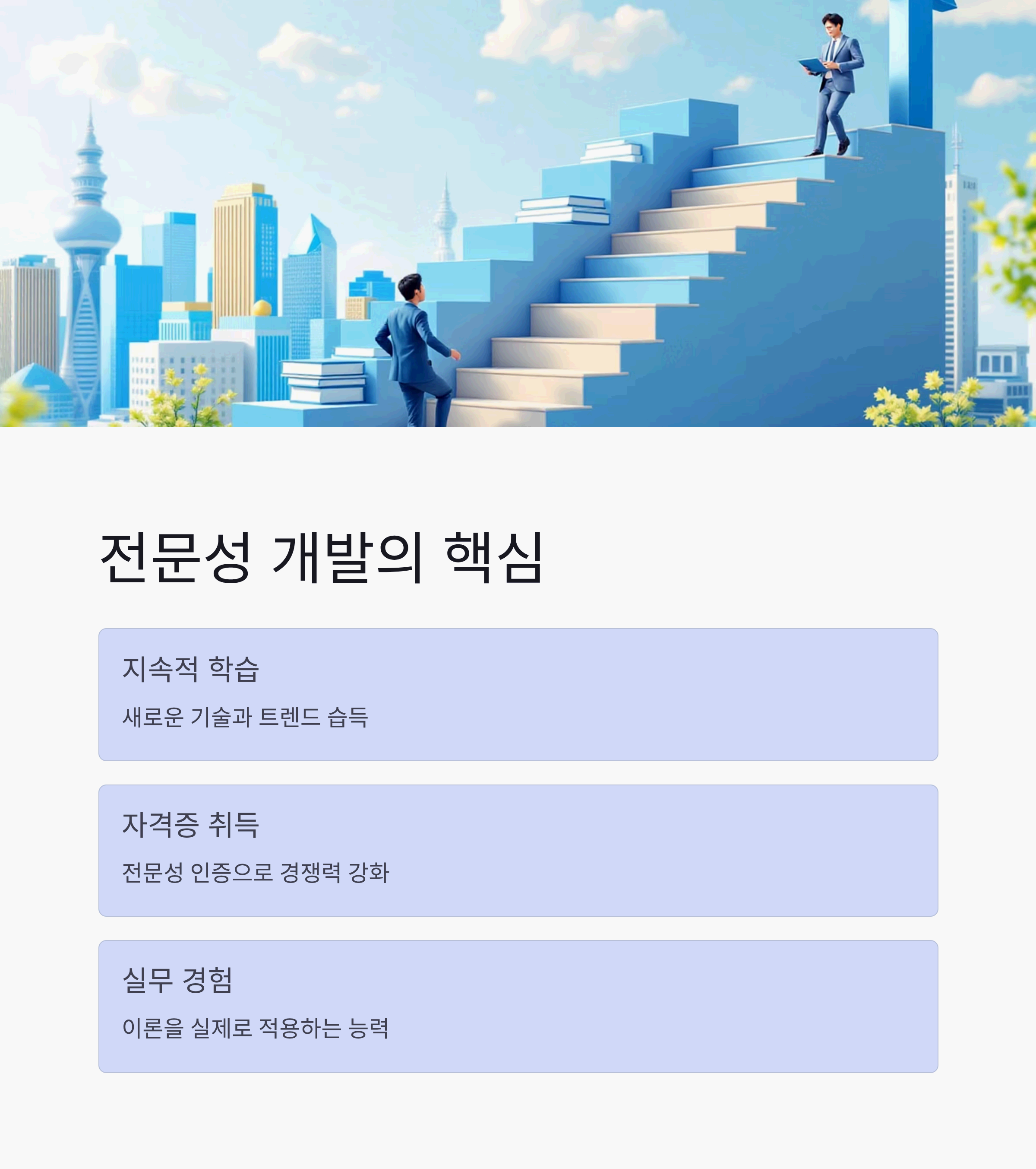 - 전문성 강화: 끊임없는 자기계발로 나만의 경쟁력을 만드세요.