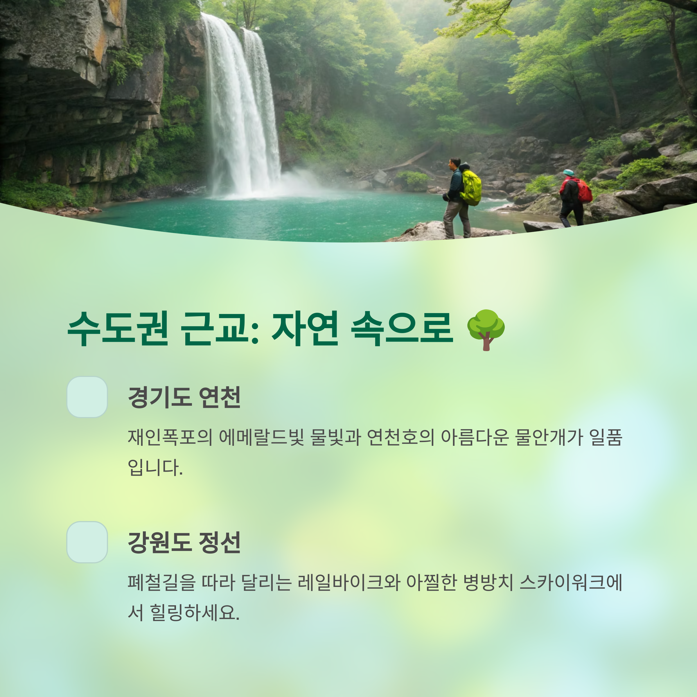 수도권 근교: 복잡함은 잠시 잊고, 자연 속으로 🌳