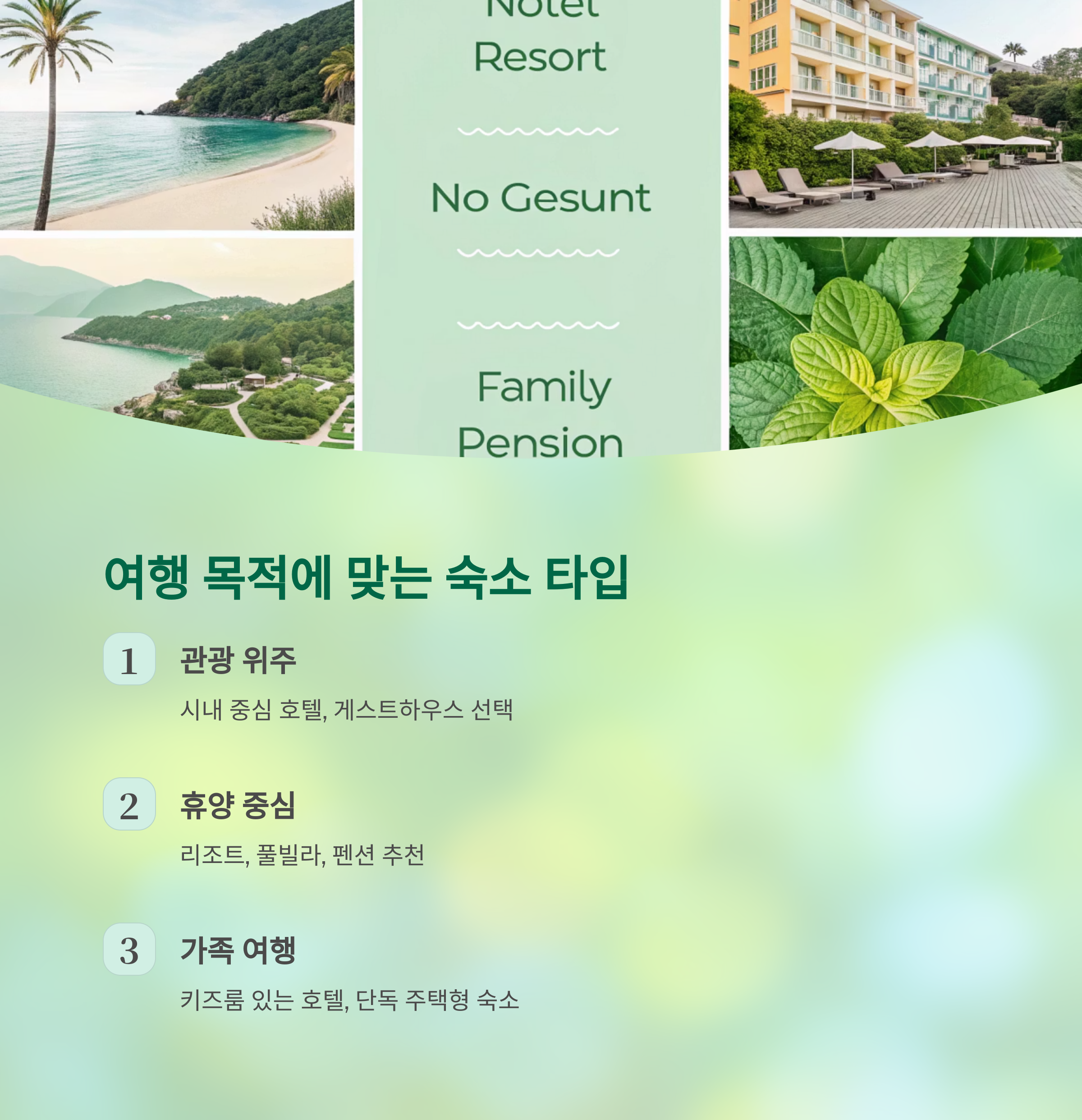 관광 위주의 여행인지, 휴식 중심인지에 따라 숙소 종류부터 달라져야 합니다.