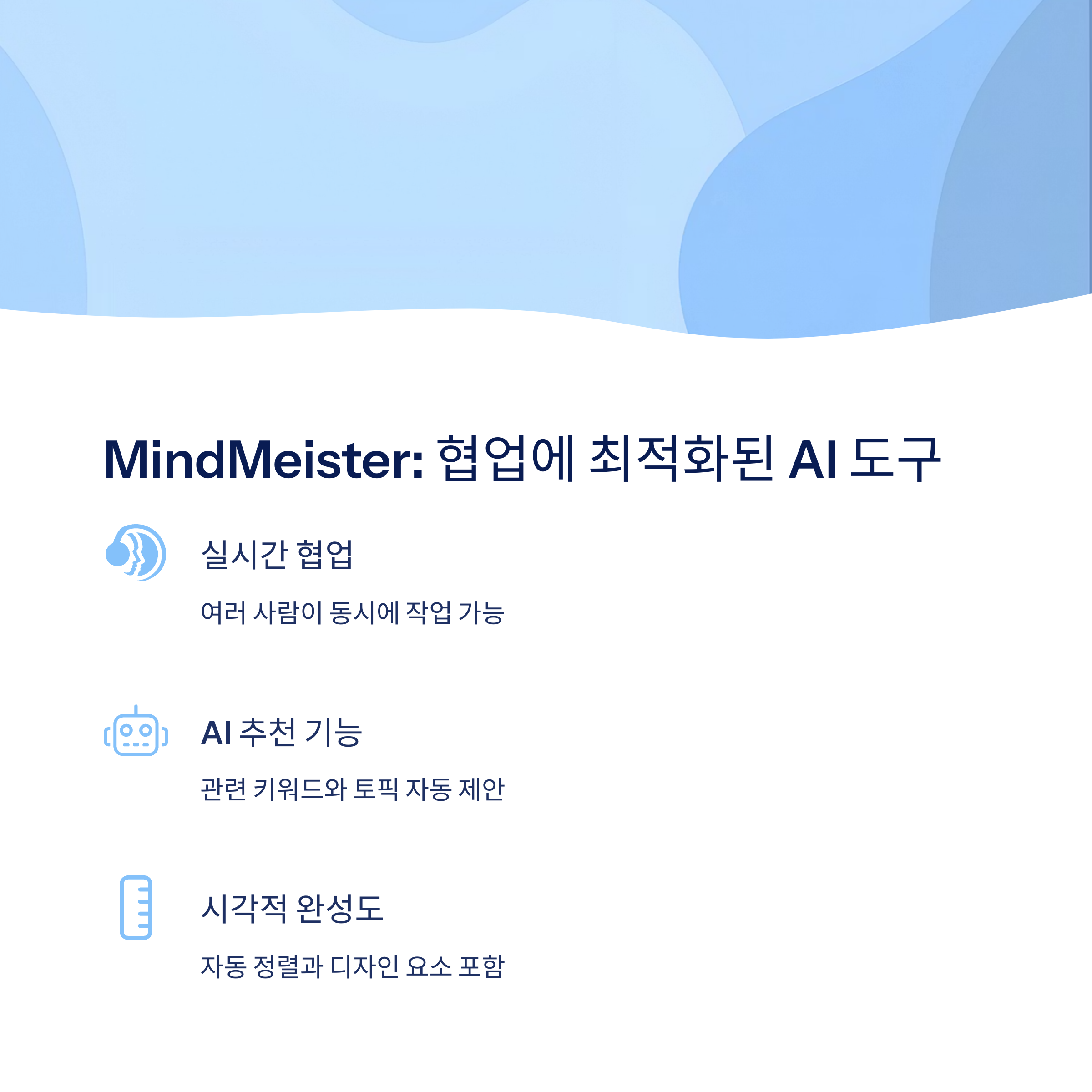 MindMeister는 단순히 자동 생성 기능뿐 아니라, 여러 사람이 실시간으로 함께