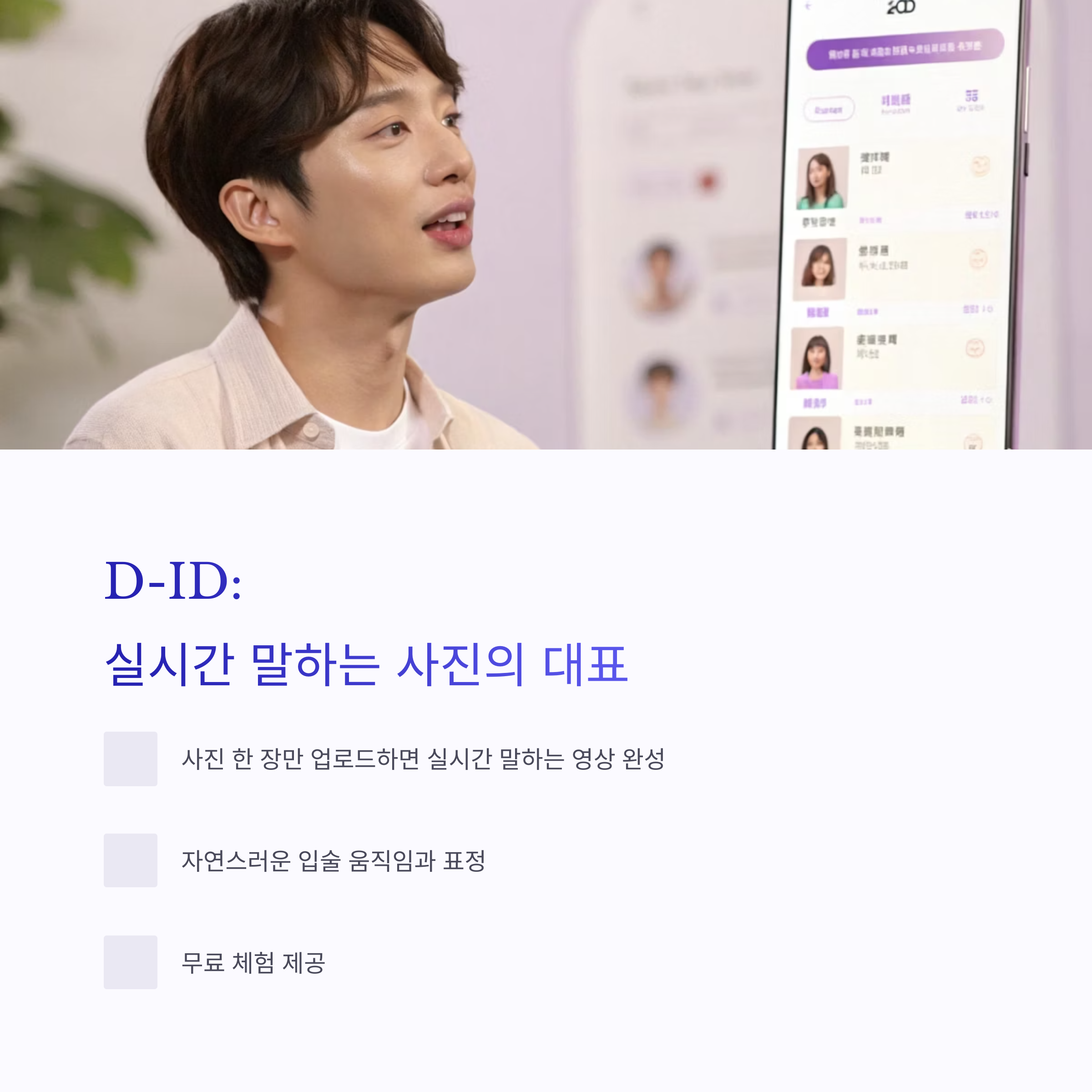 1. D-ID : 실시간 말하는 사진 제작의 대표주자