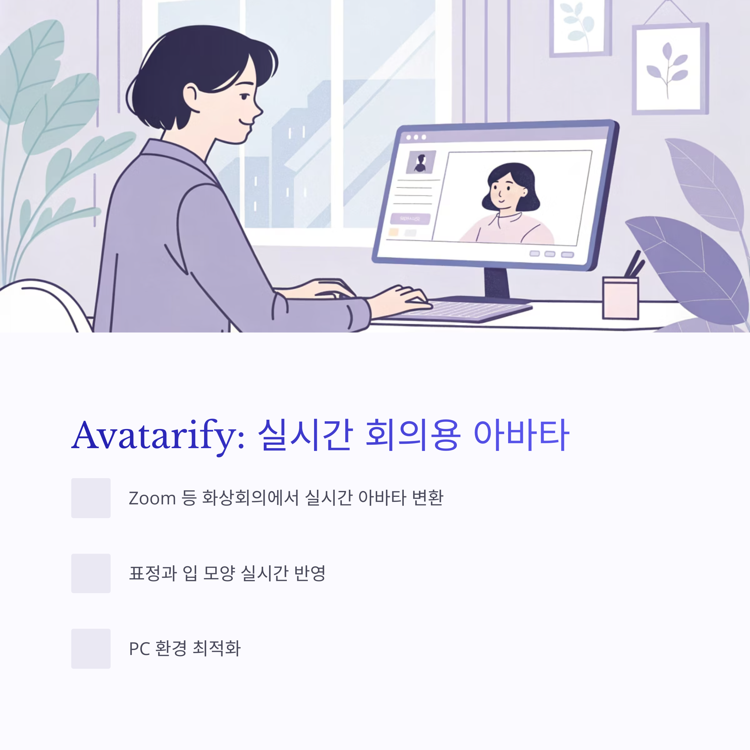 | Avatarify | 실시간 아바타화 가능 | 화상회의, 실시간 콘텐츠 |