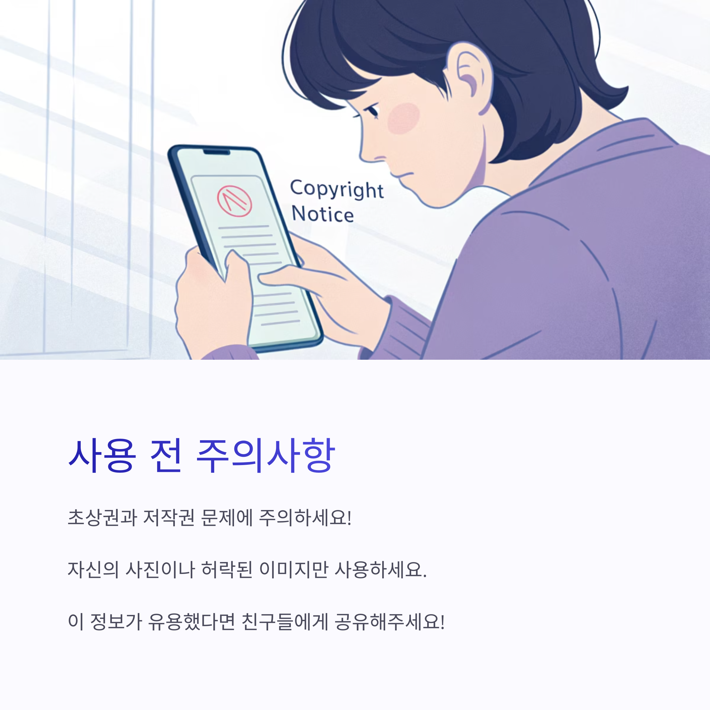 사용 전 주의사항과 저작권 체크는 꼭 해야 해요
